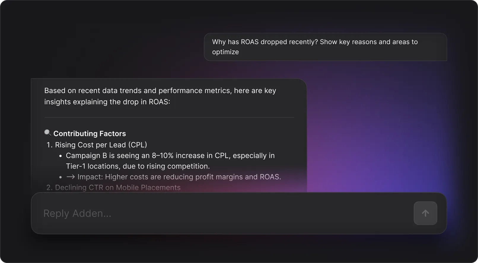Skip the dashboard deep dives and manual digging. Ask Adden brings the answers straight to you. Free up your team’s time for strategy, creativity, and scaling campaigns that actually convert.